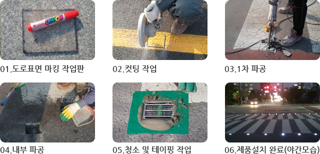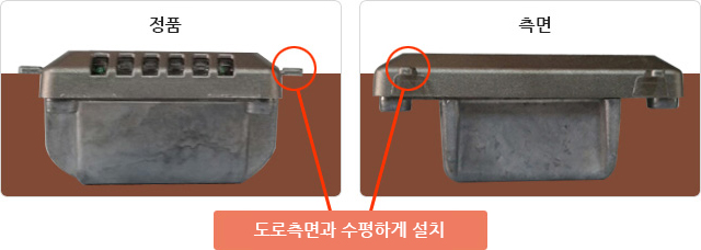 - ⑤ 투입 후 사각 모퉁이를 도로 표면과 수평이 되게 설치